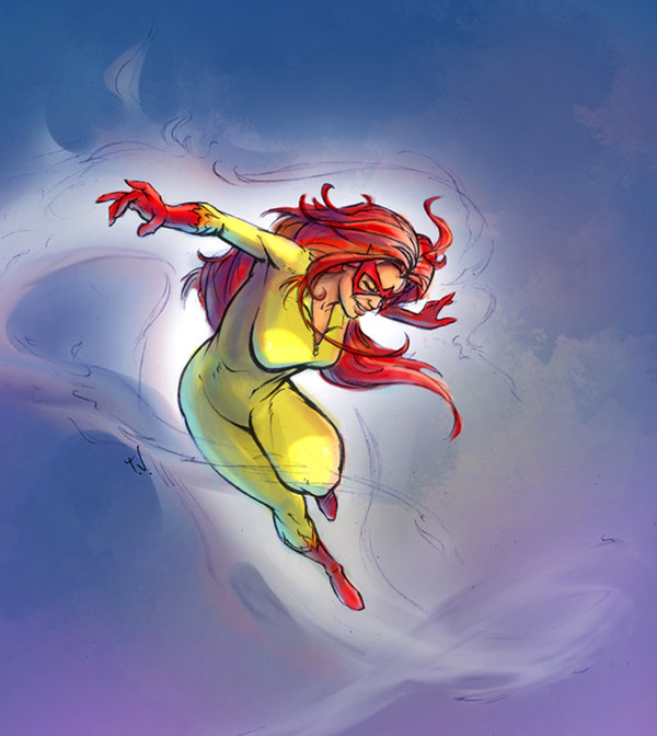 Tribute to Saturday morning cartoons; Firestar from Spider-Man and His Amazing Friends.