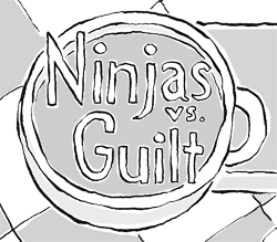 The themes ranged from Ninjas battling werewolves (Gia Luc), aliens (David Yee), airport security (Danny Lee), catering trucks (Jason Courtney), and even the moon (Jeff Biancalana). My concept was “Ninjas versus Guilt”.